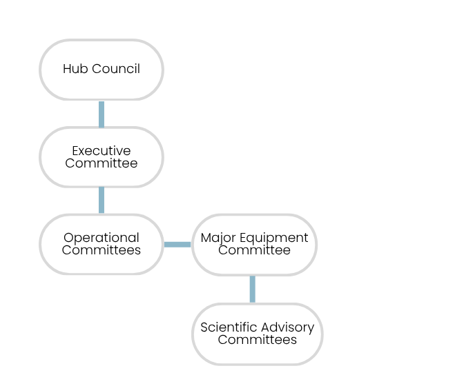 A simplified version of The Hub’s governance structure is shown in the below graphic, to find out more about our committees and how to get involved, visit our Governance page.